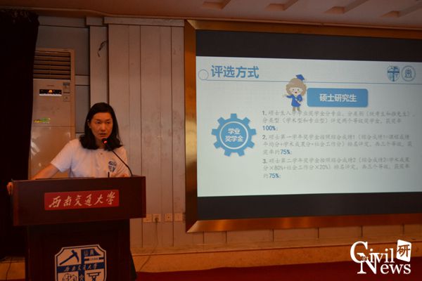 土木学院学生工作负责人车小洁老师简要介绍了土木学院研究生奖助学金概况。