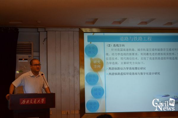 道路与铁道工程系杨荣山副教授介绍了轨道、选线、路基方向的的突出成果以及近年来研究生招生情况和就业情况;地下与隧道工程系副主任晏启祥教授对学科现状,研究方向及近几年的科研业绩和学术成果展开介绍;桥梁工程系主任李永乐教授简要介绍了色情av影片