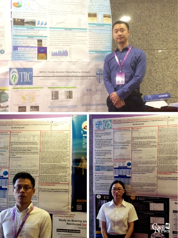 在大会期间,我系代先星、李保险、Ali Rahman(伊朗)、Mouhamed Bayane(贝宁)和 Yusupov Bekhzad (乌兹别克斯坦)等博士研究生,以及徐铖、余孝丽、田锐敏等硕士研究生分别就其研究内容以海报展示的形式,介绍了我系在路面检测与路面材料领域的部分研究成果。