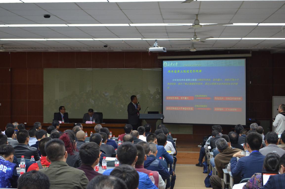 在主题为“深埋长大隧道与水下隧道工程的先进理念与修建技术”分会场报告中,包括特殊地质及复杂条件下隧道施工的关键技术、优化模型及计算方法在隧道结构计算中的应用、先进材料及设备在隧道施工中的应用等研究领域。其中,长安大学陈建勋教授进行了题为《黄土隧道支护技术与关键施工技术》的精妙解析,对黄土隧道建设过程中所出现的工程问题深入分析,并对其支护技术及关键施工技术进行详细讲解;中国铁路总公司工程管理中心桥隧部副部长肖广智进行了题为《特殊地质条件隧道问题与对策》的精彩汇报,对特殊地质条件下隧道的修建与维护提出较多完备的对策;北京交通大学谭忠盛教授进行了题为《高地应力软岩隧道施工大变形控制技术》的出色解说,以成兰铁路隧道大变形为背景,从地应力特征、围岩工程特性、大变形分级、大变形控制技术等方面进行阐述。在场听众无不深领其意,掌声如潮。