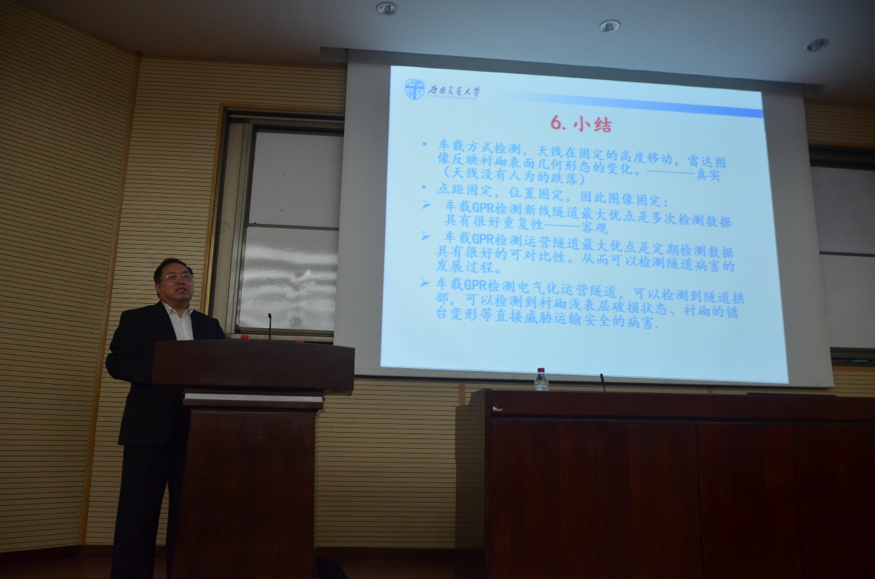 蒋雅君副教授进行了题为《高寒地区隧道喷膜防水应用实例及经验》的出色解说,详细介绍了防水保温构造,并分享了他个人在喷膜防水施工中的经验,提出“防水是基础,排水是核心,保温是关键”的隧道冻害防治措施。全场掌声雷动。