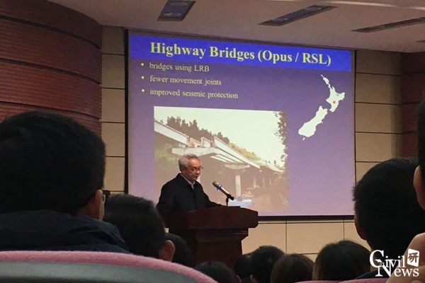 周福霖院士带来的学术报告为《工程抗震隔震减震控制的发展与应用》。他以工程抗震为主题,着重介绍了工程隔震、减震控制技术的发展与运用,并对未来抗震、隔震减震技术的发展进行了展望。其中,周福霖院士特别谈到,地震灾害早已成为威胁人类的自然灾害之首,而中国则是世界上受地震灾害最为严重的国家,中国是“救灾强国”同时也是“防灾弱国”,导致这一现象的根本原因是国内的地震安全要求未能与基本建设规模相匹配——当国内建设规模早已从求生存阶段过渡到求安全阶段时,建筑结构的设计标准却迟迟没能跟上前进的步伐。他指出,隔震、减震控制技术作为40年来工程抗震技术的重大突破研究成果,俨然早已成为21世纪结构抗震的技术主导,中国的科学家们应该跟上这股技术潮流,将国内的抗震技术带向一个新的高度。